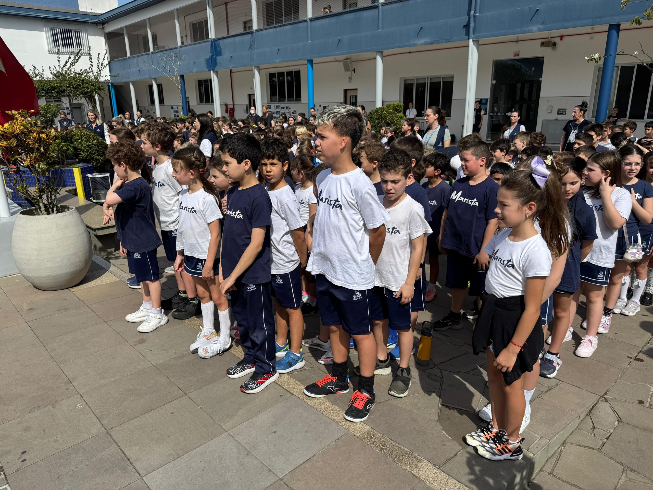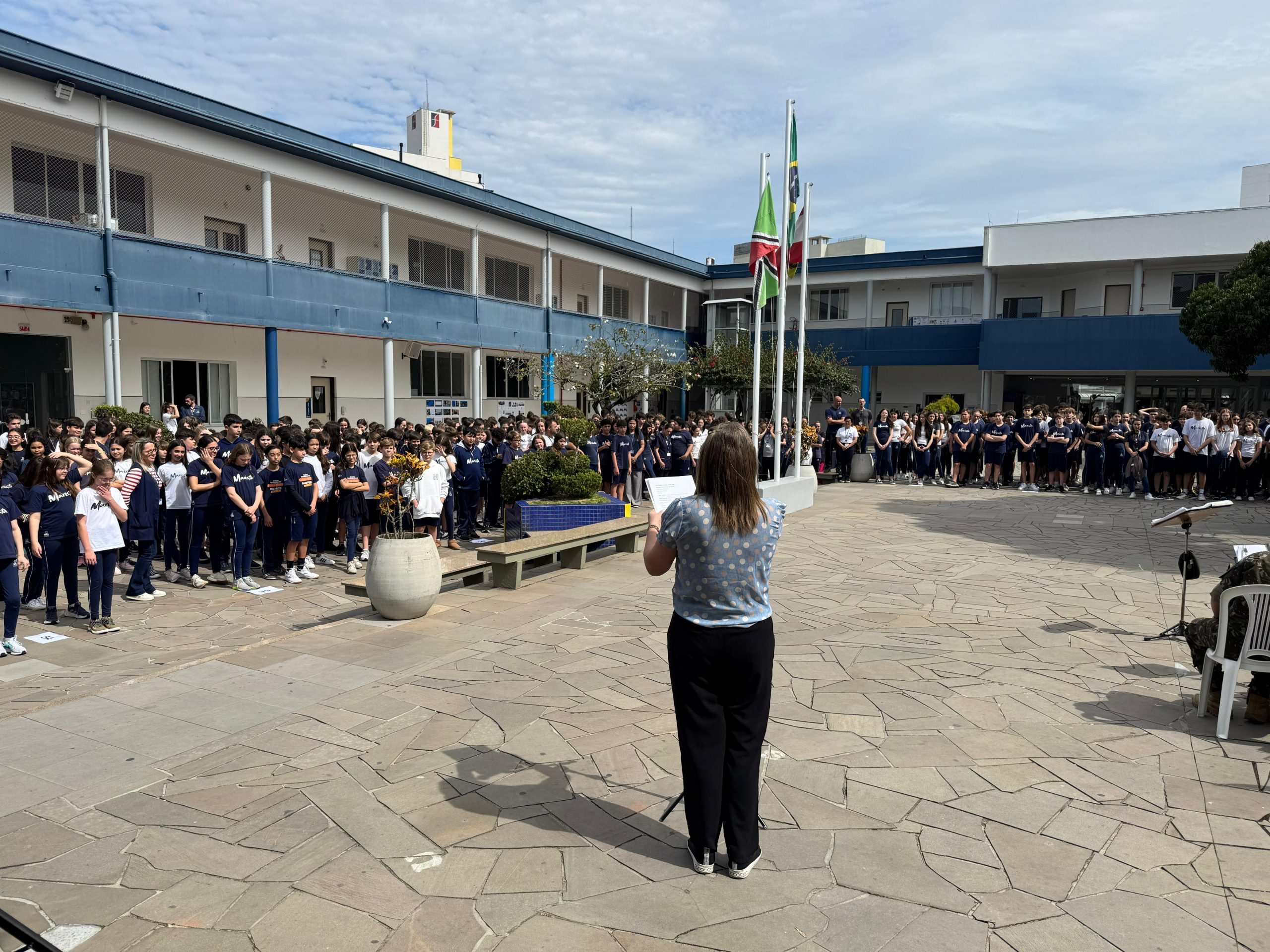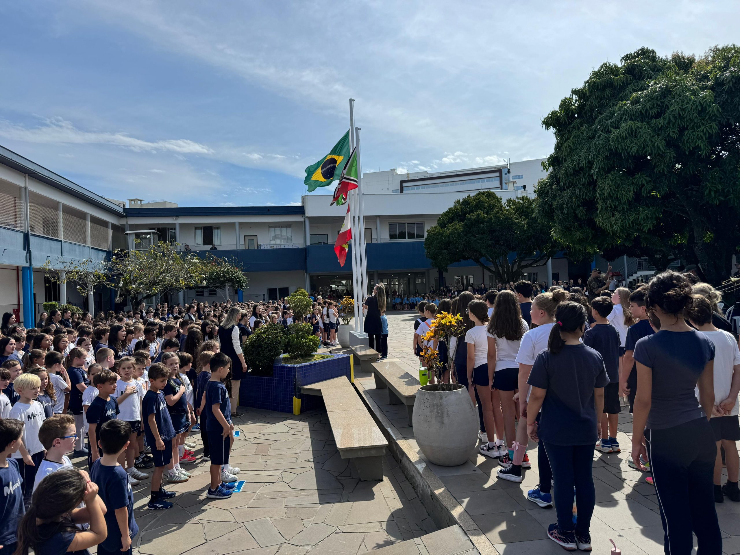 Nesta terça-feira (2), os estudantes do Colégio Marista Criciúma participaram de uma Homenagem à Pátria.