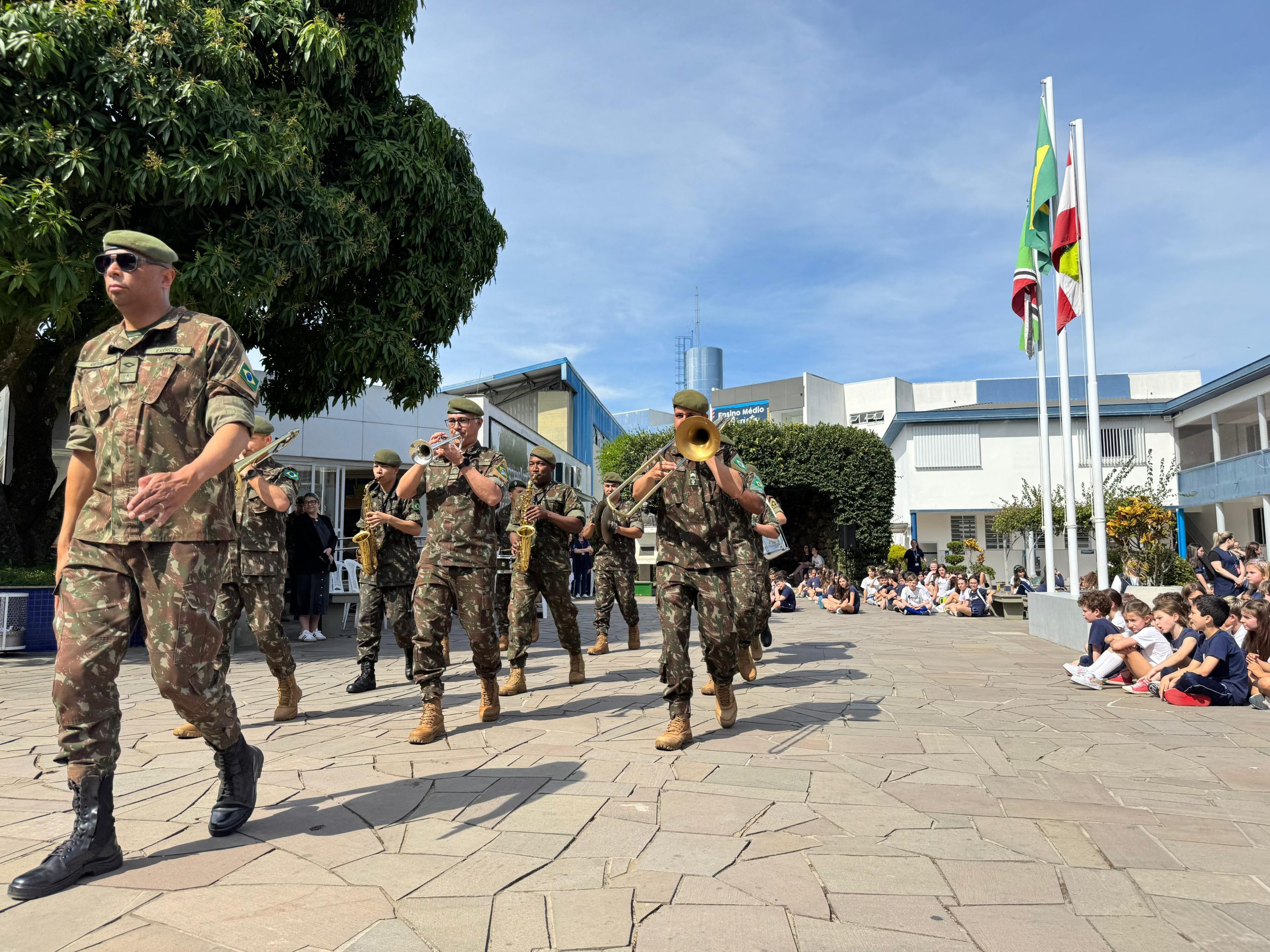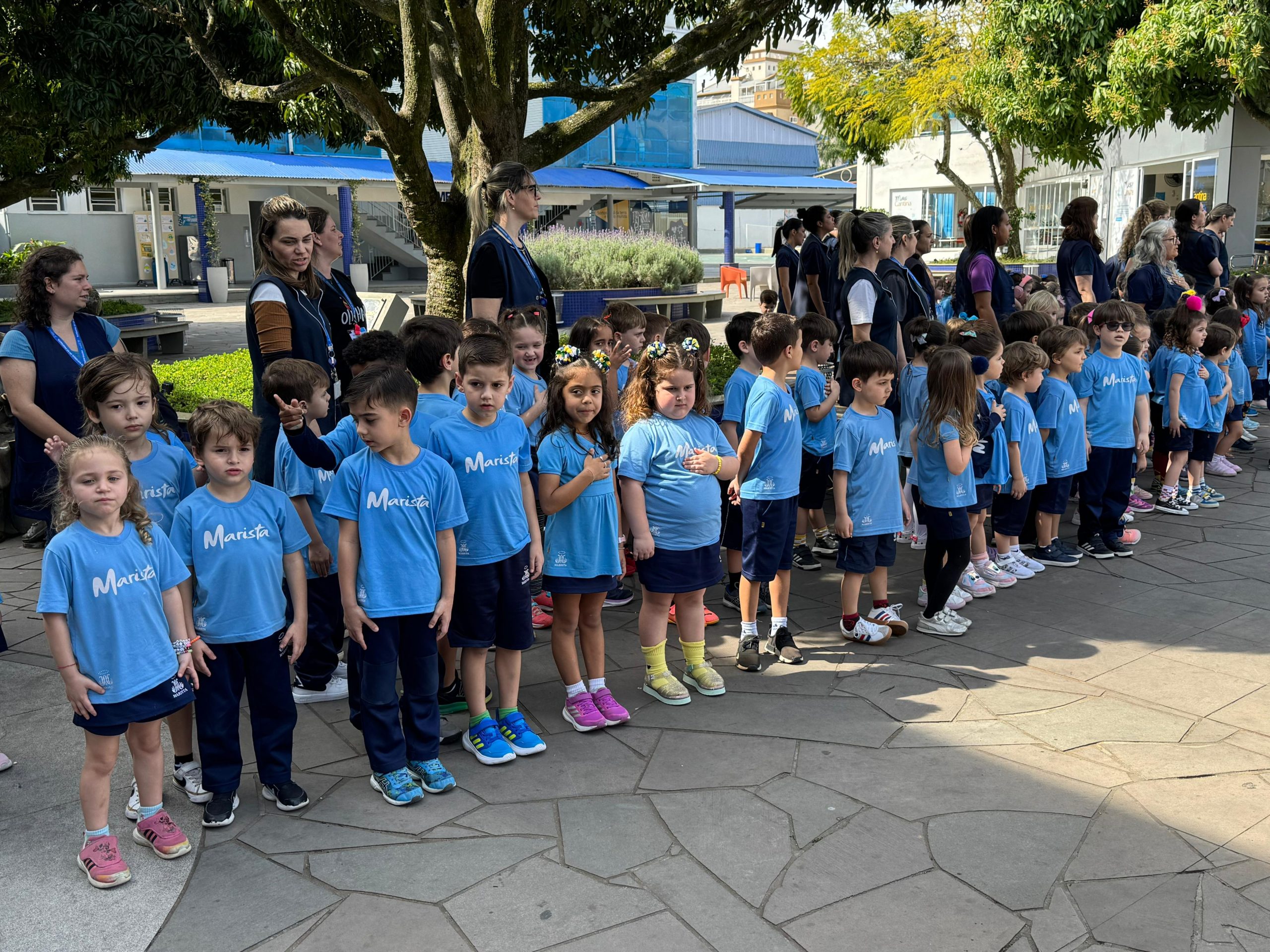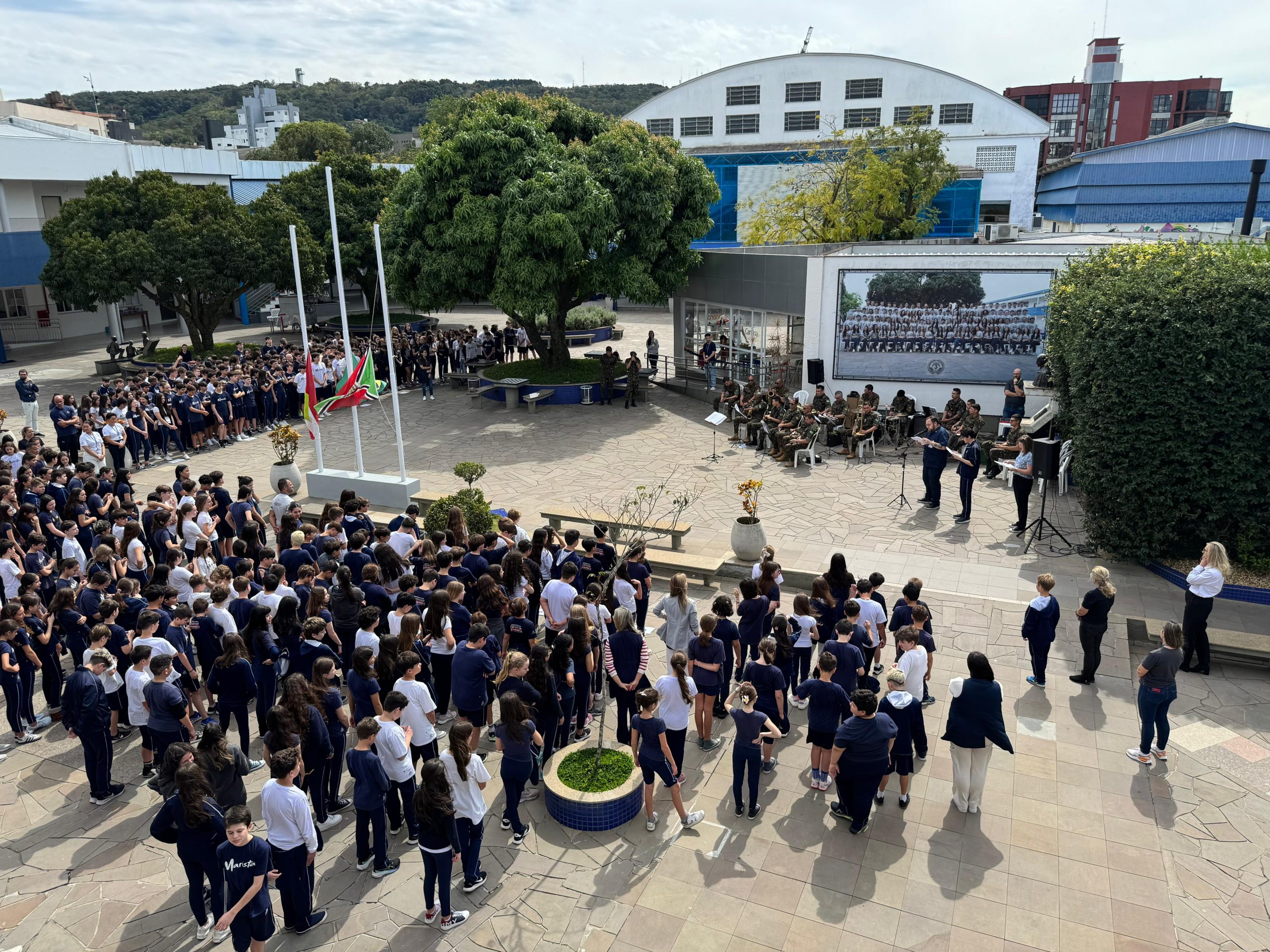 Nesta terça-feira (2), os estudantes do Colégio Marista Criciúma participaram de uma Homenagem à Pátria.