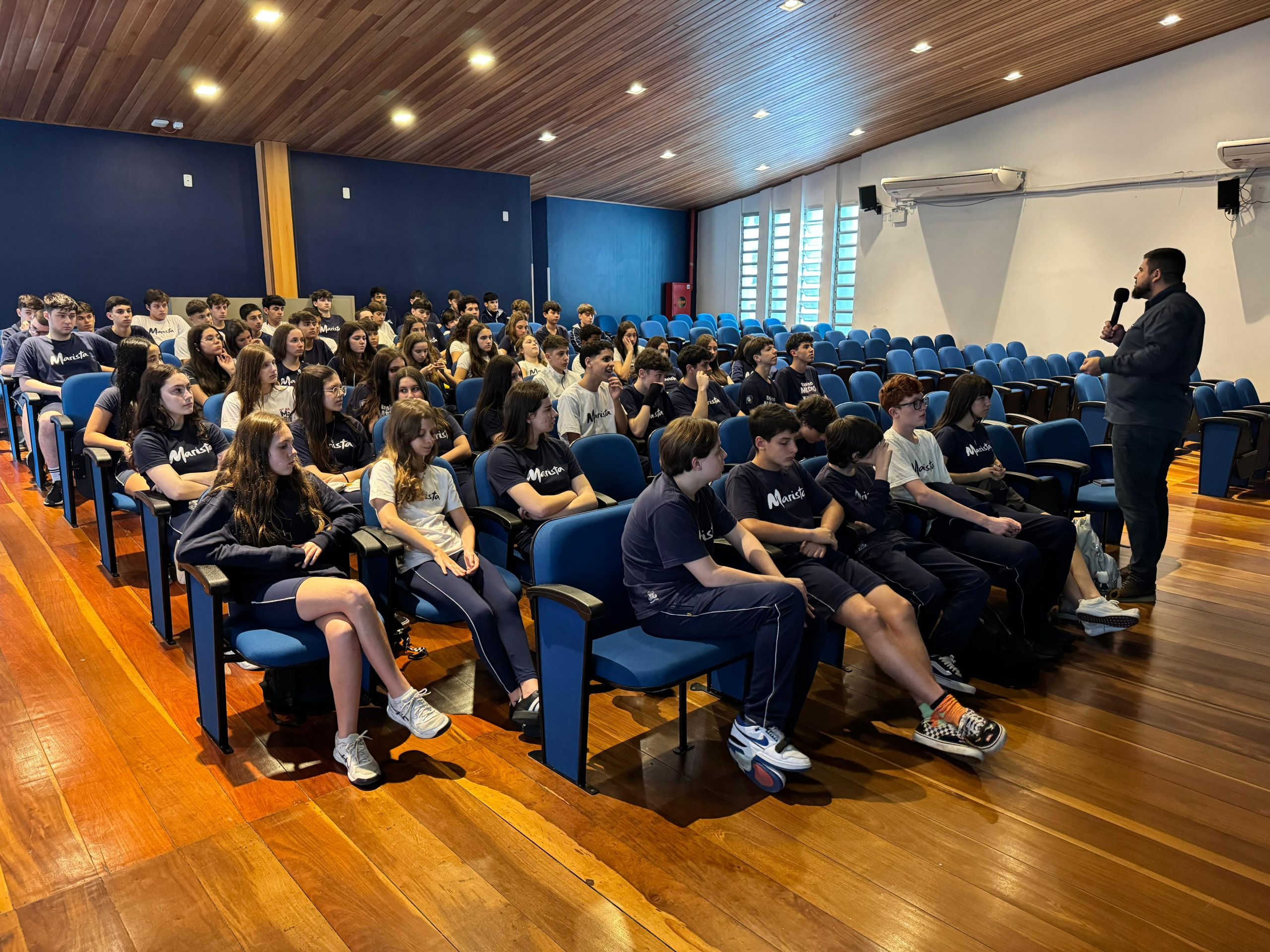 Nossos atletas participaram, nesta quarta-feira (3), de um momento de espiritualidade e também receberam recados importantes sobre a Olimpíada Marista Brasil 2025.
